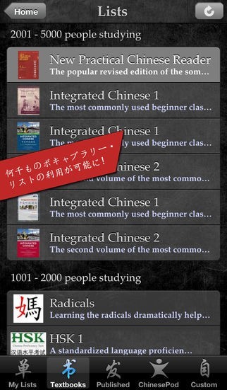 中国語の学習は初めてですか? Skritter中国語101のリストでは基本単語から習得できます。参考書をお使いですか? 広く利用されている参考書230冊が収録されています。必要な単語だけ勉強したいですか? 自分専用の単語リストが簡単に作成できます。- Skritterは自動的にピンイン、意味、発音、漢字分解、記憶方法情報を表示します。 ChinesePod、Heisig、HSK、その他のソフト、3000人のユーザーが作成した漢字リストなど、このアプリではすべてを網羅しています。