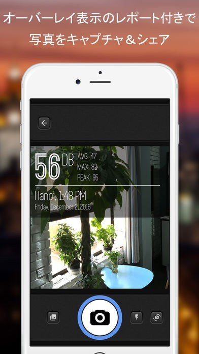このアプリにはdBレポートを写真へとオーバレイで表示させる機能があります。その場所の騒音の度合いが視覚的に伝えられるこの機能で、ライブの様子などをSNSなどでシェアしましょう。