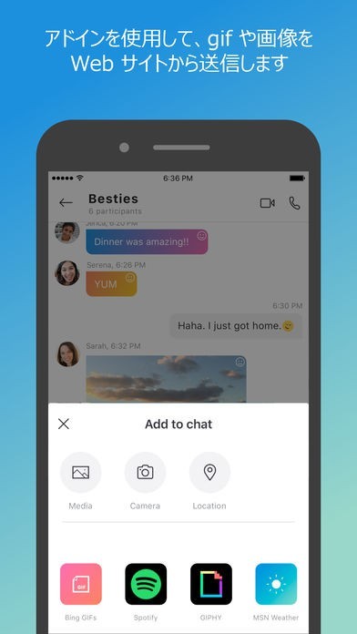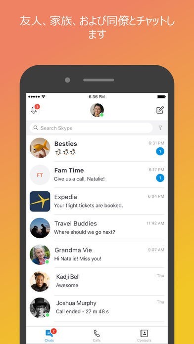 「Skype for iPhone」は長い歴史を持っていて、たくさんのユーザーが利用しているSkypeをiPhoneで利用することができるアプリになります。メッセージング機能が強化されていて、文字チャット機能やビデオ通話機能だけでなく、音声メッセージや写真、絵文字などを使ってコミュニケーションをとることができるようになっています。グループ機能を使うことで任意の複数の人たちとコミュニケーションをとることが出来るので、友達や家族みんなで利用することが出来ます。