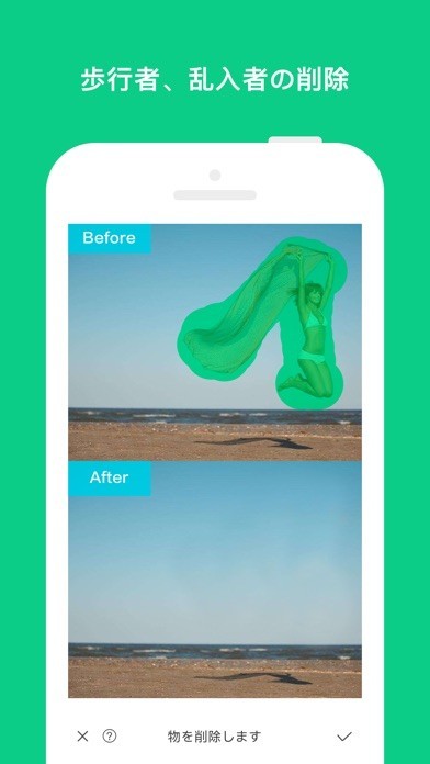 App Storeより引用これは写真専用消しゴムツールです。最新の人工知能とピクチャー処理テクノロジーを採用し、それを使い