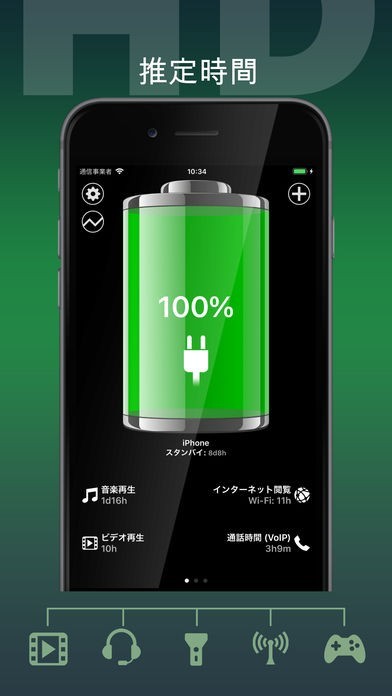 ただ残りのバッテリーでどういう事ができる教えてくれるだけでなくバッテリーの健康状態を設定してより正確な残量を表示してくれるので類似のアプリよりも精度が高くて良いというのがあります。