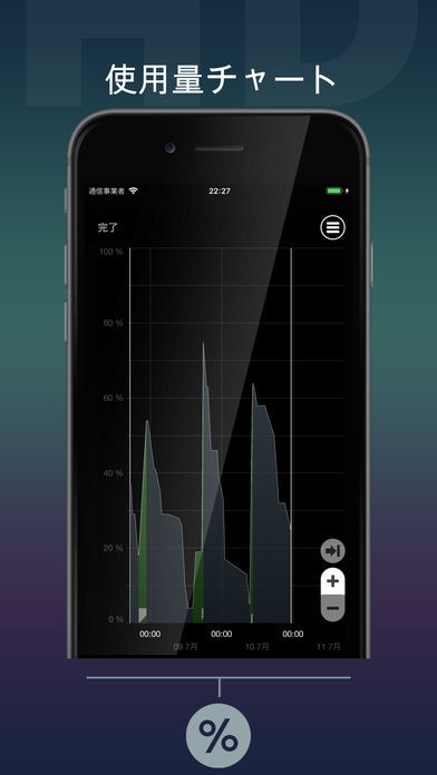 充電の完了時間が確認出来ると同時に、残量が調べられる使用量チャートが見やすいです