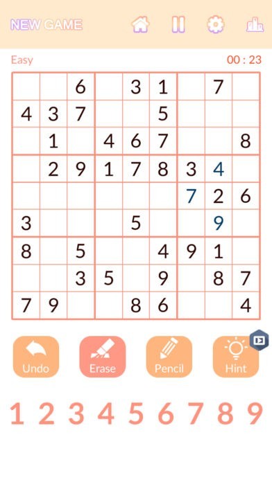 ナンプレを集中して一度に解ききる必要はありません。電車での移動時間や会社の休憩時間など限られた時間であっても一時停止機能を活用することによって少しずつ楽しめます。