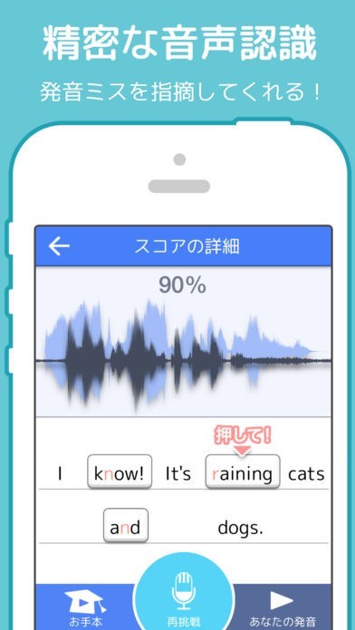自分の発音を点数で評価するから、リアルな発音を学習できる