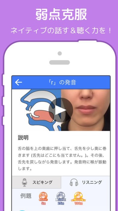 発音をチェックしてくれるアプリで発音矯正になります、またネイティブが使う表現や会話が見れ、映画を見るより効率よく勉強できます