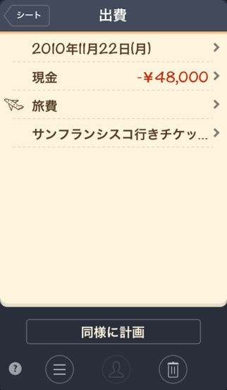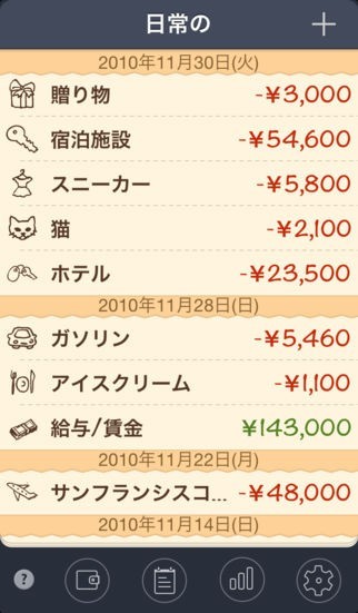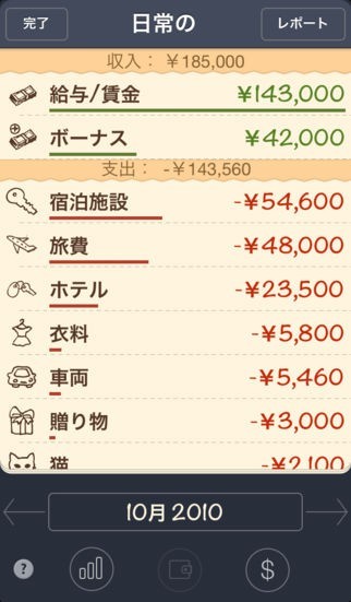 旅費やギャンブル等の複数のカテゴリーが用意されているので、支出した内容も簡単に整理していけます。収支データをグラフで確認する事が可能なので、使い過ぎた項目も素早く把握出来ますね。