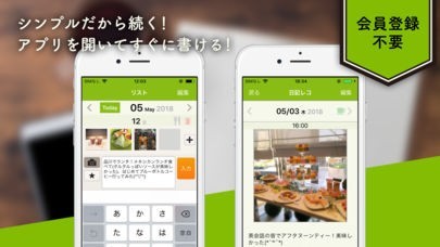 日記をアプリ起動してすぐ書き込める他、カレンダー機能やリスト機能など豊富で日記帳として便利です。