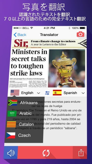 仕事などで外国語で書かれた資料を扱うこともあると思います。大量の資料になってくると、自力で翻訳していては時間がかかってしまうという人もいます。そんな人のためにこのアプリでは外国語で書かれた資料の写真を撮るだけで、文字に起こしてくれ、翻訳までしてくれます。