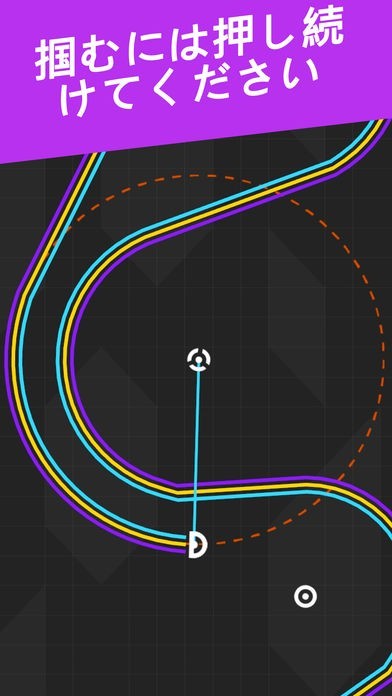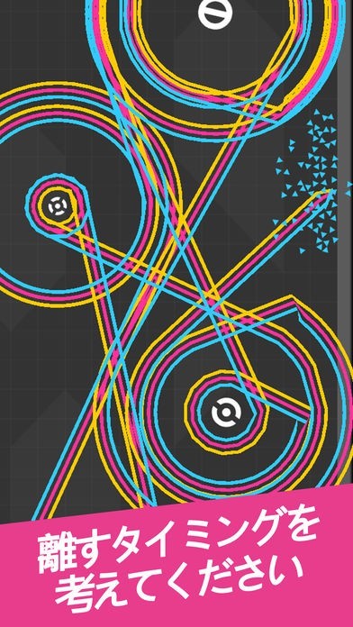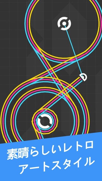 オブジェクトの周りをぐるぐる回るラインを、タイミングよくタップして先へ伸ばそう