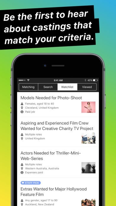 Be the first to hear about the latest castings and apply straight from your iPhone. Be seen by model agencies and talent scouts, and get discovered today!