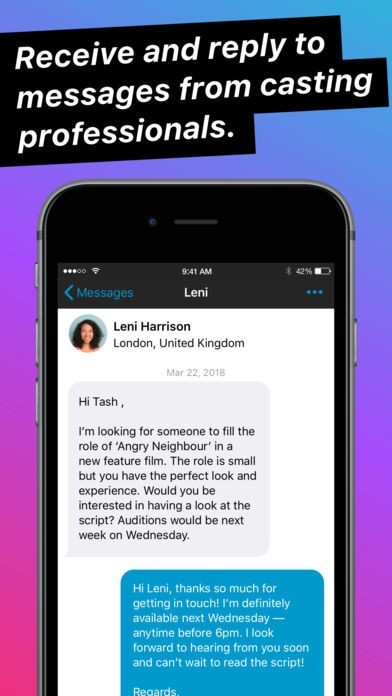 • Receive and reply to messages from casting professionals