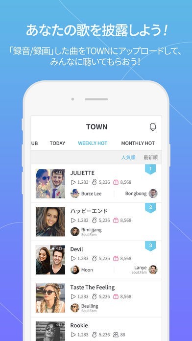 「everysing!」では、カラオケの歌詞を表示してくれるだけではなく、録音することが出来ることから、それをアップロードすることで多くの人に聴いてもらえます。よって、歌に自信を持っている人は評価してもらえる可能性が高くて嬉しいことでしょう。 それらはランキングで表示されることから、素敵な素人の方を発見することが出来、他では絶対に聴けない歌声を聴くことが出来ます。 さらには、歌手の方とデュエットすることも出来るので、夢のような時間を楽しむことも出来ます。 加えて、CLUBに参加することによって、同じ趣味を持った方と交流することが出来るので、友人を増やすことが出来ます。