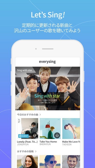 「everysing!」では、カラオケの歌詞確認と録音をすることができます。自分の歌声をチェックし、それをアップロードすることで多くの人に聴いてもらえて、歌に自信を持っている人は評価してもらえる可能性が高くなり、人気者になれる可能性が高まります。「ランキング」表示から、素敵な素人の方を発見できるかも?その他、変わった歌声を聴くことができるので、まだ見ぬ歌手のタマゴを発見することができます。さらに、歌手の方とデュエットすることもできるので、夢のような時間を楽しめます。加えて、CLUBに参加することによって、同じ趣味を持った方と交流することで、友人を増やして毎日を充実させることも可能です。 また、アプリ内には有料アイテムがあり、使うことでさらに便利になるので、気に入ったならばそちらを購入するという手もありますし、VIPチケットでサービスを受けることもできるので、7日間、30日間などの中から選択できます。
