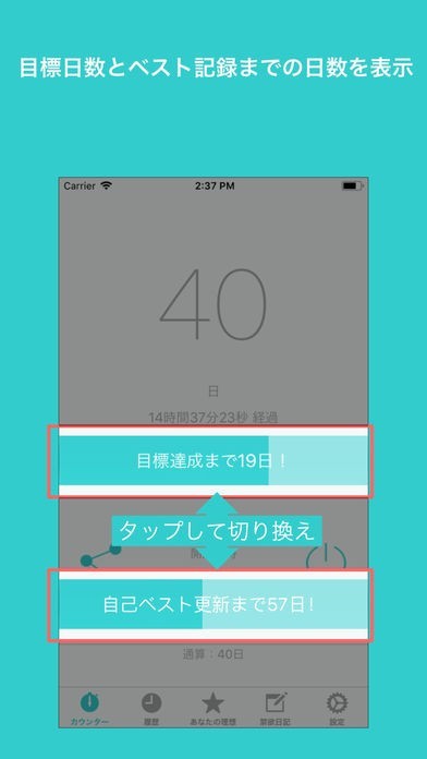 「禁欲カウンター」には、すでにアレを我慢して日数が立っている人にもうれしいシステムが搭載されています。それは、過去の我慢の開始日から起算してチャレンジを続けることができるというシステムです。