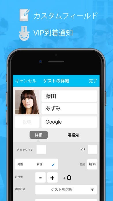 • ゲスト+1: 手間のかからない同行者処理、ゲストの人脈を記録
