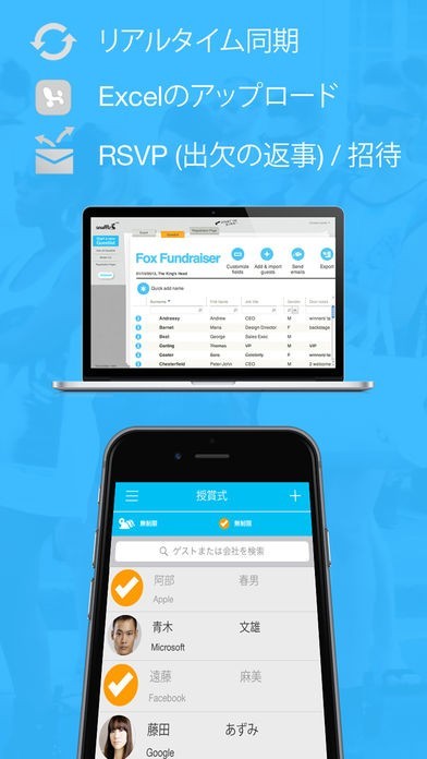 • Excelシートやお使いのアドレス帳、Facebookイベント参加者から来客名簿に名前を直接インポート