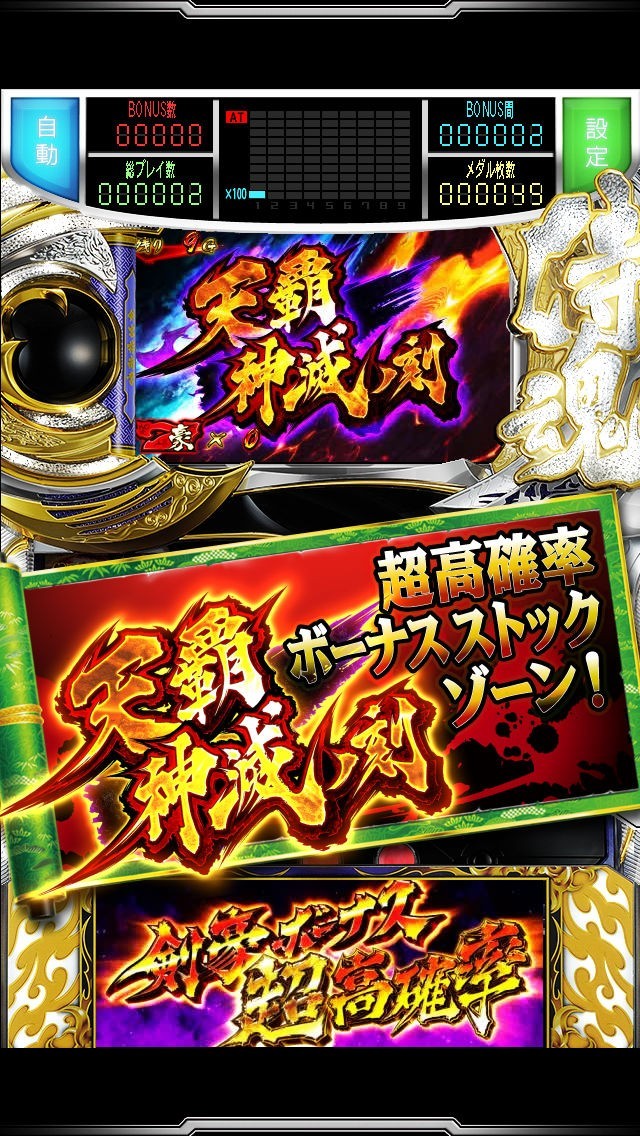 そこから突入する3つのボーナスに加え、「練気モード」「尋常チャンス」「最終血戦」「天覇神滅ノ刻」も搭載。