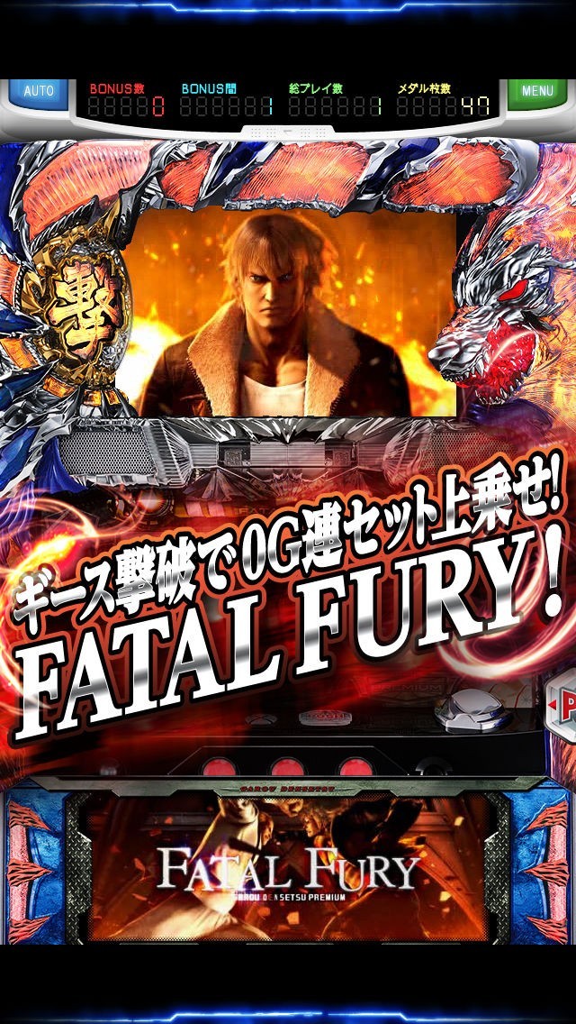 ダブル液晶による演出と破壊力のあるATが魅力のパチスロアプリ「餓狼伝説PREMIUM」