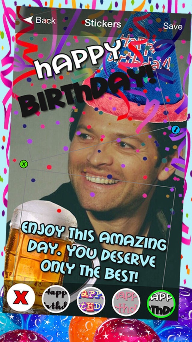 - 使用する超簡単。ちょうどあなたの希望の誕生日プロップ·ステッカーまたはメッセージをクリックして、その大きさ、角度、位置を調整することができるよ!