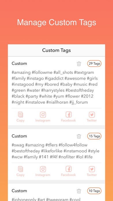 Instagramを始めたばかりのころはどのハッシュタグを使っていいのかわからない状況です。そこで、本アプリではカテゴリごとに世界中で用いられているタグを検索することができるメリットがあります。