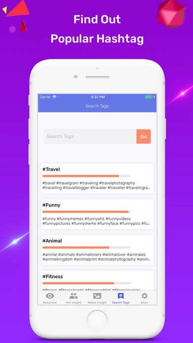 - Search hot tags to your social post