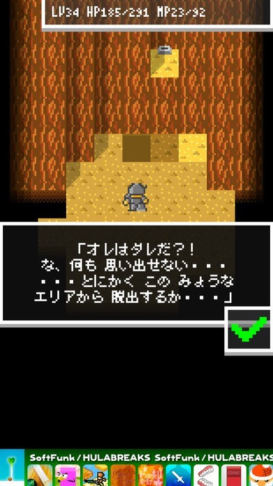 脱出RPG2は、記憶を失くした主人公と一緒にRPGで脱出ゲームを進めていきます。大人はドット絵がかわいく懐かしさを感じて癒されながら遊べます。矢印ボタンをタップして、主人公を移動させ気になるところをタップしながら調べていきます。
