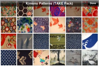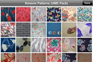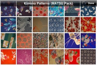 このアプリには基本的に着物の50パターンが無料で搭載されています。