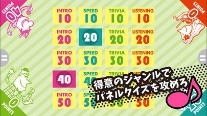 合計20枚のパネルから問題を選べるパネルクイズが搭載されています。4ジャンルの10点から50点までの5段階の問題から好きなものを選べるので、テレビのクイズ番組に参加している感覚を味わえます。