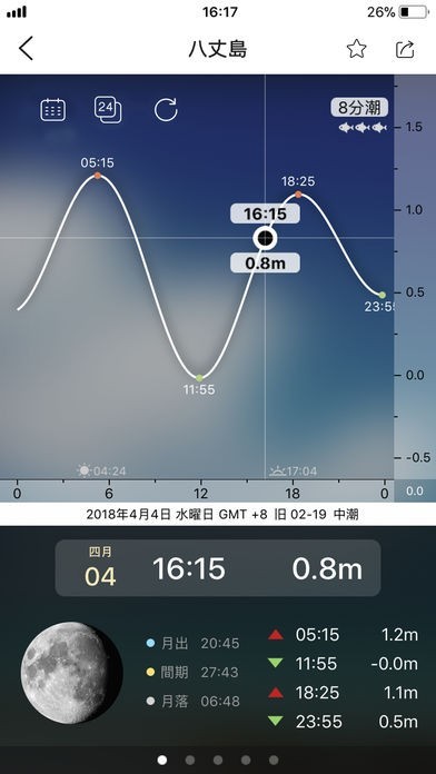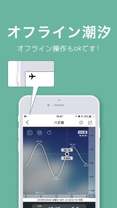 オフラインでも潮汐をリアルタイムに予測してくれる