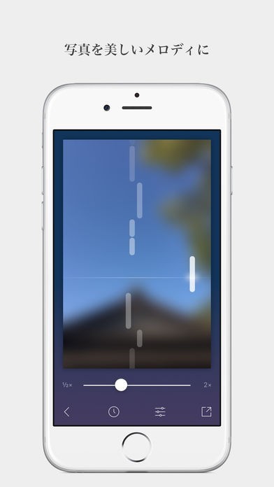 写真のデータを解析し、音楽を作り出せるのがこのアプリです。 写真には色相、彩度、明度の三属性と呼ばれる色データが含まれています。 色データを解析して音楽にする機能が付いているのです。 写真によって含まれる色データが異なるため、作り出される音楽も写真によって異なります。 音楽にしたい写真を選ぶだけ、わざわざ自分で作曲することはありません。 楽譜を読めない方でも大丈夫です。 出鱈目な音楽では無く、癒しの音楽に替えてくれるため、リラックスしたい時や就寝する時に便利な機能となっています。 睡眠タイマー機能があるため、予めセットしておくと自動的に切れます。 お好みの再生速度に変更することも可能です。
