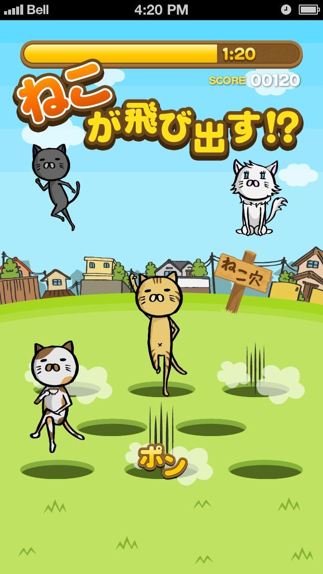 穴から飛び出てくる"ねこ"たちをタップ&フリックではじき飛ばすだけ。