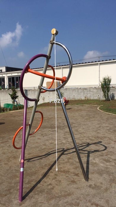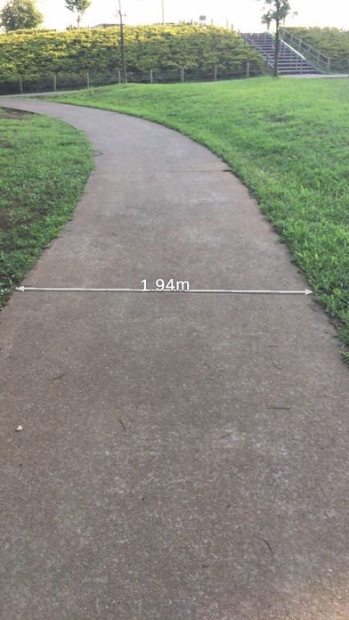 長さを測りたいものをスマホのカメラで映して開始点と終了点をそれぞれポイントするだけで長さが表示されます。水平面だけでなく木や建造物なども計測することができます。
