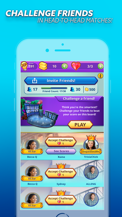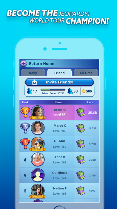• Become a Jeopardy! World Tour champion as you climb the global leaderboards