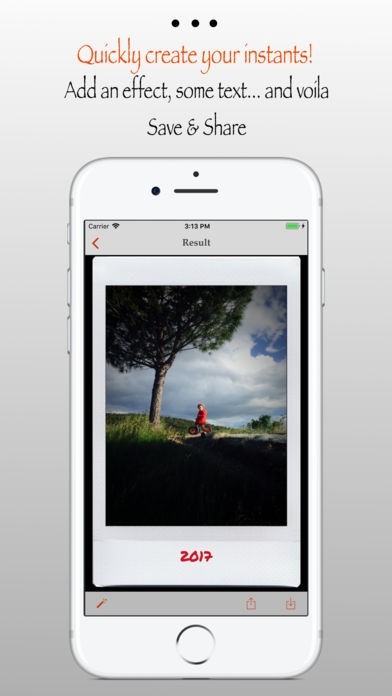 日常生活の何気ないシーンも大切な瞬間として残しておきたい。大切な人に素敵な写真を送りたい。 インスタント風のお洒落な写真を作成したい。 「Instants」では、特別な日だけでなくふとした瞬間も素敵な思い出として残すことができます。写真の見栄えを良くするための編集機能もあり、簡単な操作で利用することができます。複数のカラーバリエーションからテキストを追加し、メッセージを添えることも可能!作成写真は、そのままスマホに保存するができます。
