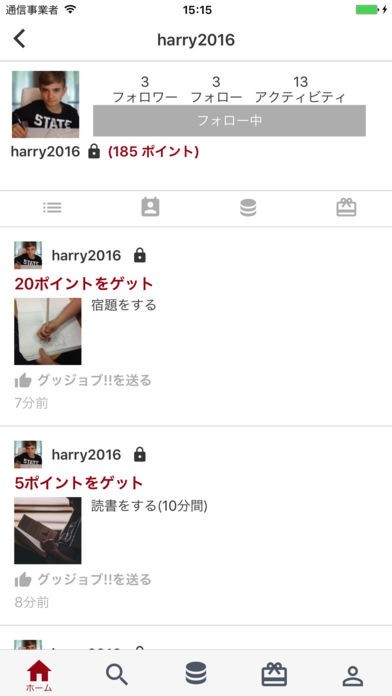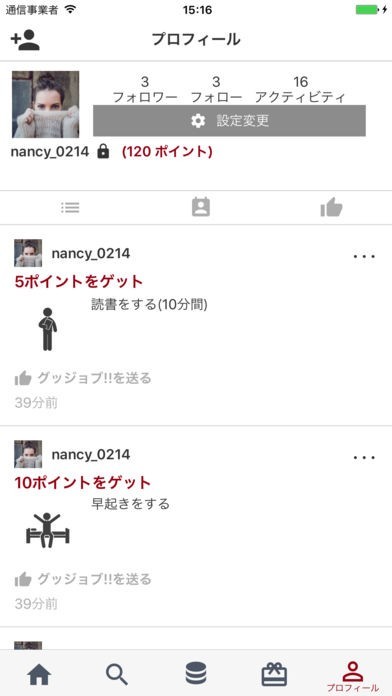 例: 本を読んだ, 運動した. 等々で10ポイントを溜める.