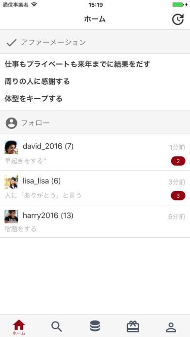 Myrules(自分ルール)では他のユーザー"フォロー"することができます.
