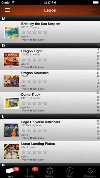 - A coverflow view to see all of your Lego sets when you turn your device sideways.