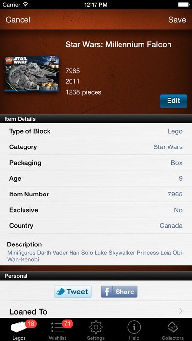 - Edit any Lego set details that are incorrect. All of our data is user driven so correct it as need and it will fix it for everyone!