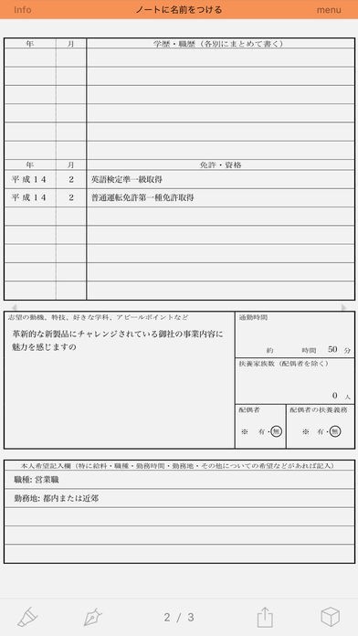 まだまだ企業の面接においては手書きの履歴書のみを受け付けるところも少なくありませんが、スタイラスペンなどを使用して手書きでデータを作ることもできます。もちろん手書きで作成したファイルもそのまま保存可能です。