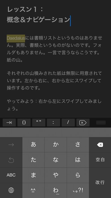 Daedalus Touchは、iOSのための初の真次世代テキストエディタです。古典的なファイルリストも、フォルダも、書類もありません。ただ、ペーパースタックと無限量のシートがあるだけです。慣れ親しんだジェスチャで操作でき、手元ですべてのタスクに完璧に対応できます。