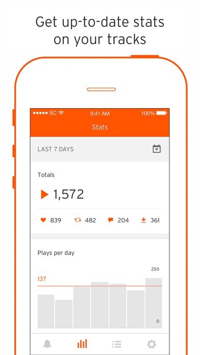 アプリ内の統計機能を使えば、投稿した音楽にどれだけのアクションがあったか一目で分かる!