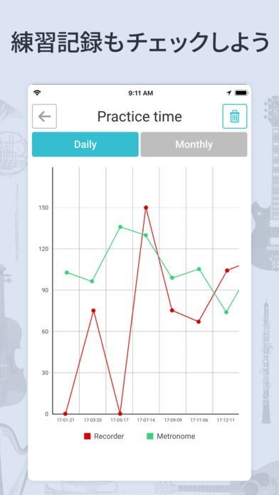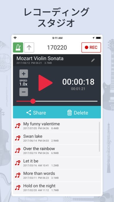 「チューナー & メトロノーム - Soundcorset」には、便利な録音機能が搭載されています!なので、自分で演奏若しくは歌った部分を、すぐに聞き返す事が可能です。メトロノームのリズムと合っているか、強弱はどうかといった確認ができるので、ただ演奏するよりも数段レベルの高い練習が可能です!