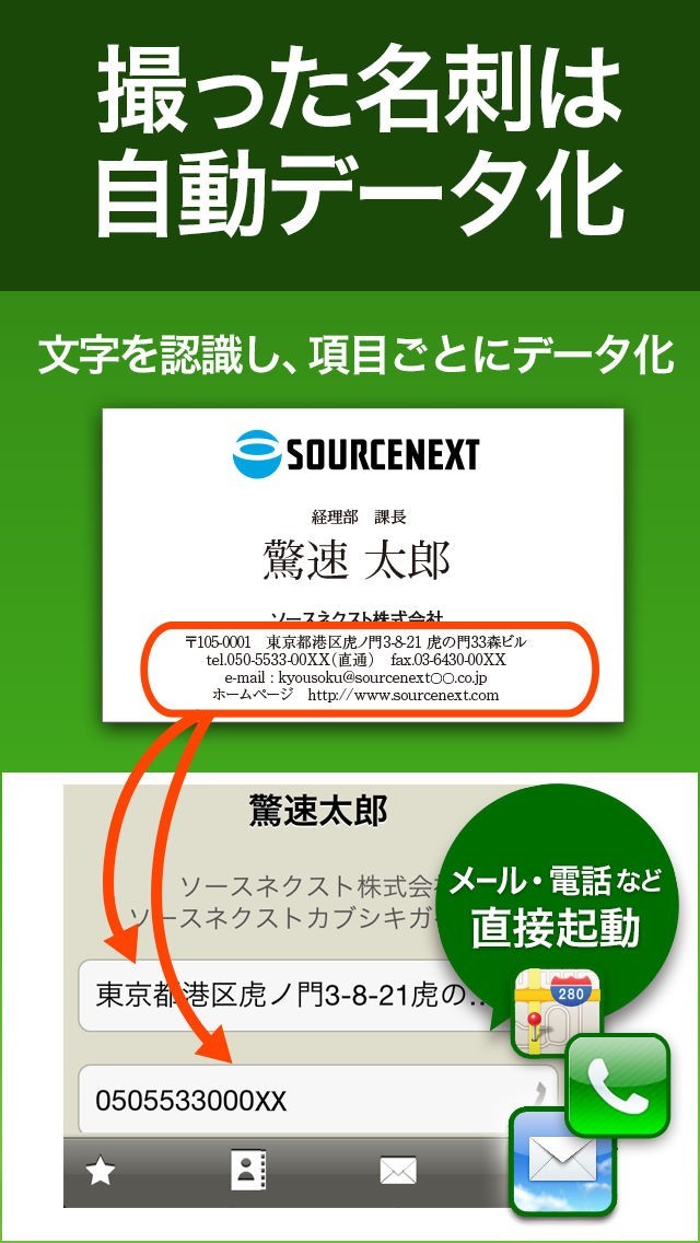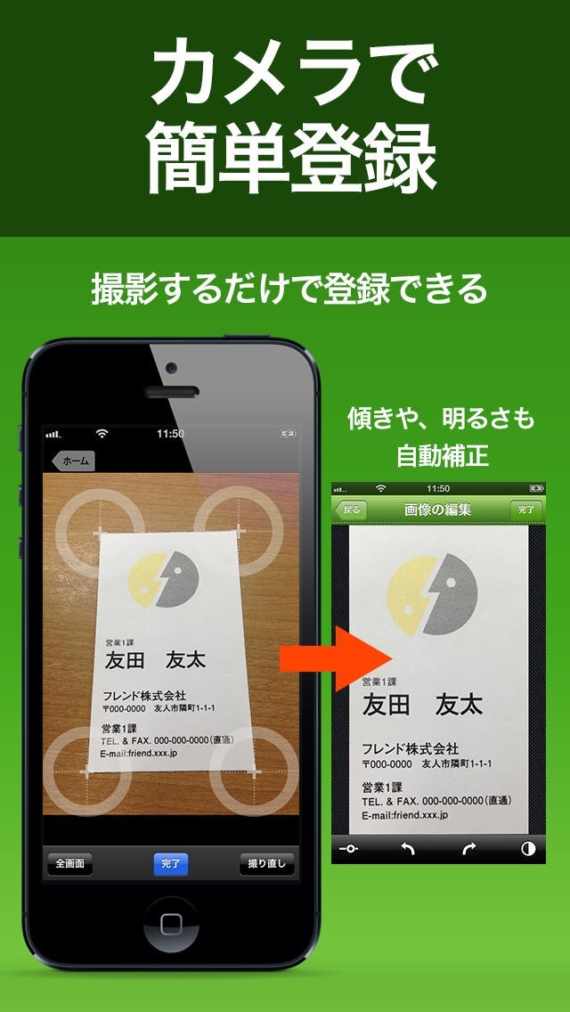 傾きや明るさも自動補正!名刺登録機能は外出中でも手軽に利用できる!