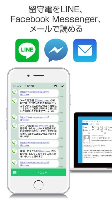 保管した留守電のメッセージを、メールやLINE、Facebook messengerなどのSNSチャットへと自動で送信することができます。 そのためメッセージが届いた端末以外でも、すぐに受信通知や内容を受け取ることが可能なのです。 またその際に音声データだけではなく、音声を変換したテキストでも通知可能なので、聞くだけではなく読んで内容をいち早く知ることができます。