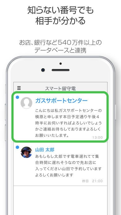 スマホにかかってきた留守電を文章で教えてくれるので、忙しいときにすぐ確認ができ助かっています。また、登録していない番号からの電話は発信者を自動で調べて教えてくれるので安心です。