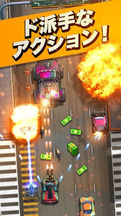 悪い奴らを倒せ!武器を装備して、どんどん車を爆破していこう!