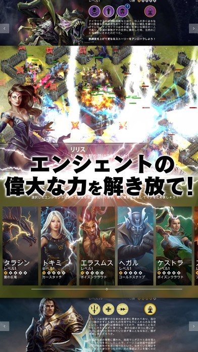 リアルなグラフィックで、オンラインのプレイヤーと300人規模の戦闘が楽しめる「ライバル・キングダム」では、リアルタイムで戦況が変化していきます。プレイヤーは、兵力を充実させるために、王国を築きましょう。戦いに備えて準備をすることが重要です。また、戦況を一変させる力を持っているのが勇者でもあるエンシェントたちです。尚、戦闘はリアルタイムで行われるため途中で中断することができません。相手の思考を読みながら自分の役割を果たすことが重要です。あらかじめ75種類以上登場するエンシェントを集めておけば危機的な状況であっても逆転することができるかもしれません。