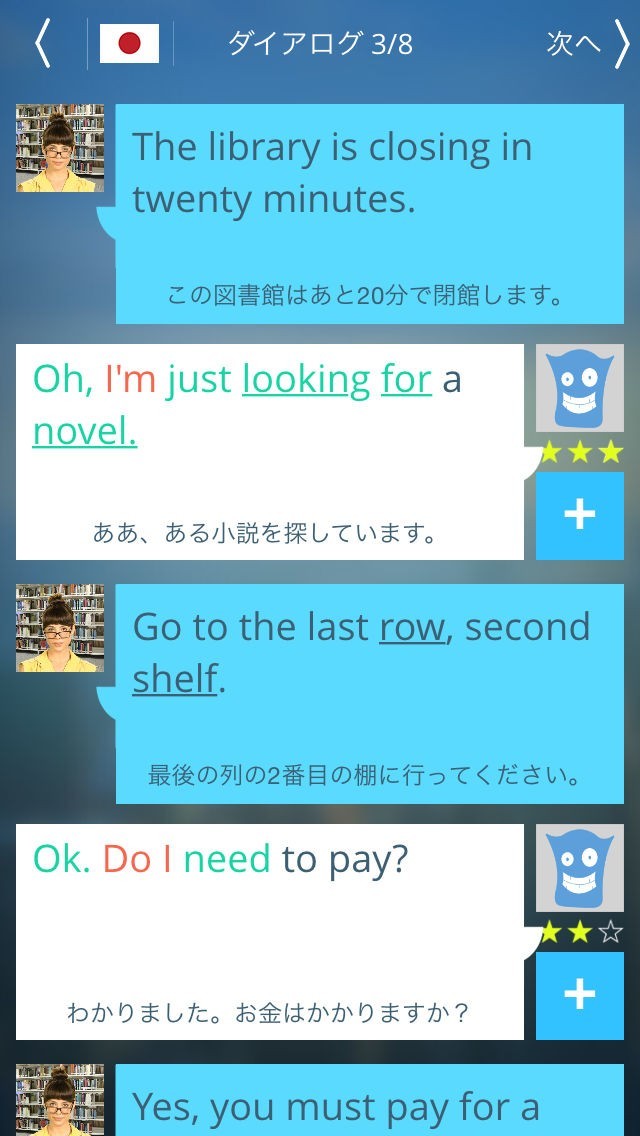 * トピックの会話は短くて面白い‐数分だけで練習ができます