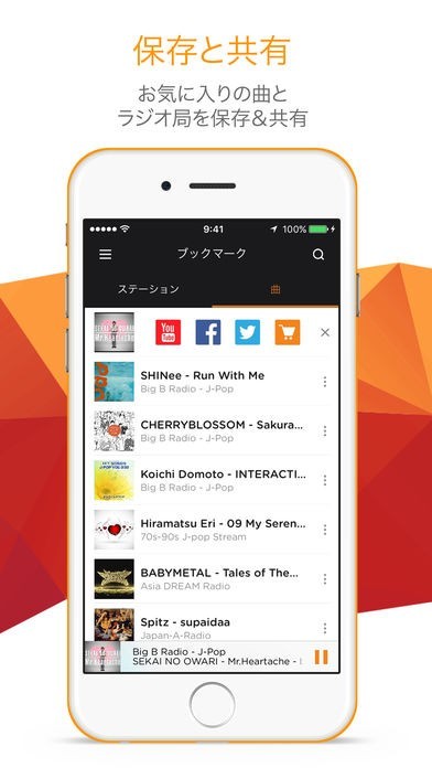 お気に入りに曲をリスト保存することでYOUTUBEやiTunesなどで簡単に曲を検索する事が可能です。また、曲を保存するのもワンタップで簡単に出来るので操作性も抜群です。