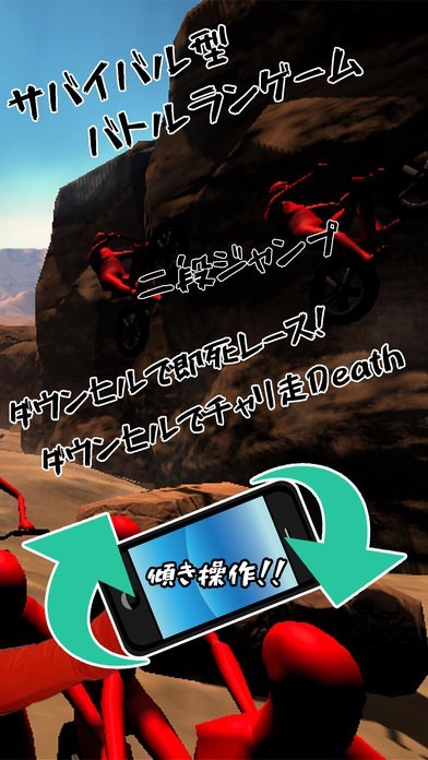 「チャリ走デス ダウンヒルで即死レース」はiPhone本体を動かすことでリアリティーのあるバイク操作を楽しむことができるサバイバルレースゲームアプリとなります。リアルなグラフィックで描かれているダウンヒルコースを8人のレーサーが同時に駆け下り、最高で500キロまで加速させることが出来るので迫力のあるレースを楽しむことができるようになっています。操作方法はiPhone本体を傾けることで方向を調整したり、タップすることでジャンプして障害物や他のレーサーを避けながら進んでいくようになっているので、素早く正確な操作が攻略のポイントになっています。